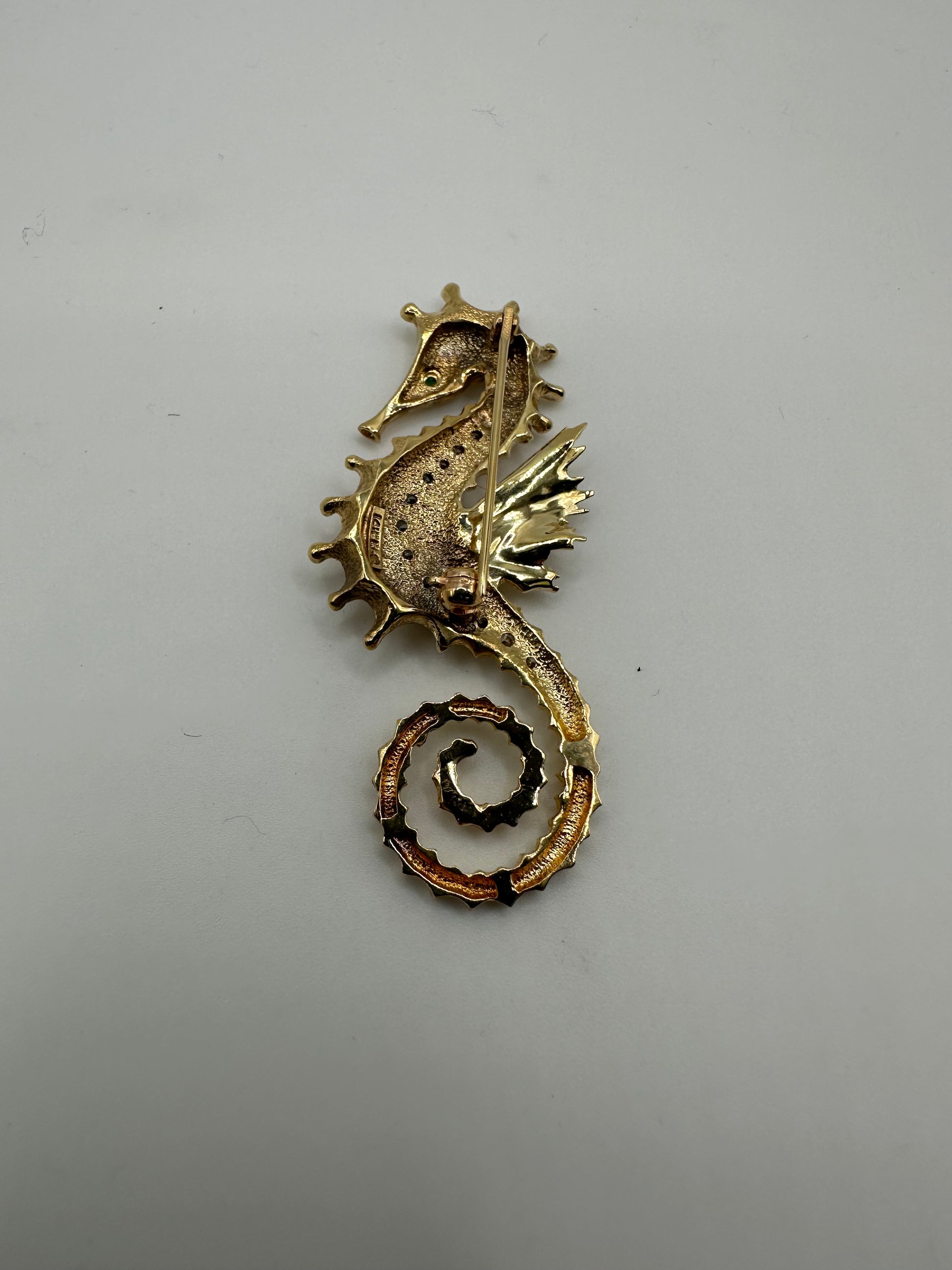 Seahorse Brooch – 14K Gold – 0.50ct Diamonds – VS1 – 11.9g – Nautical Theme